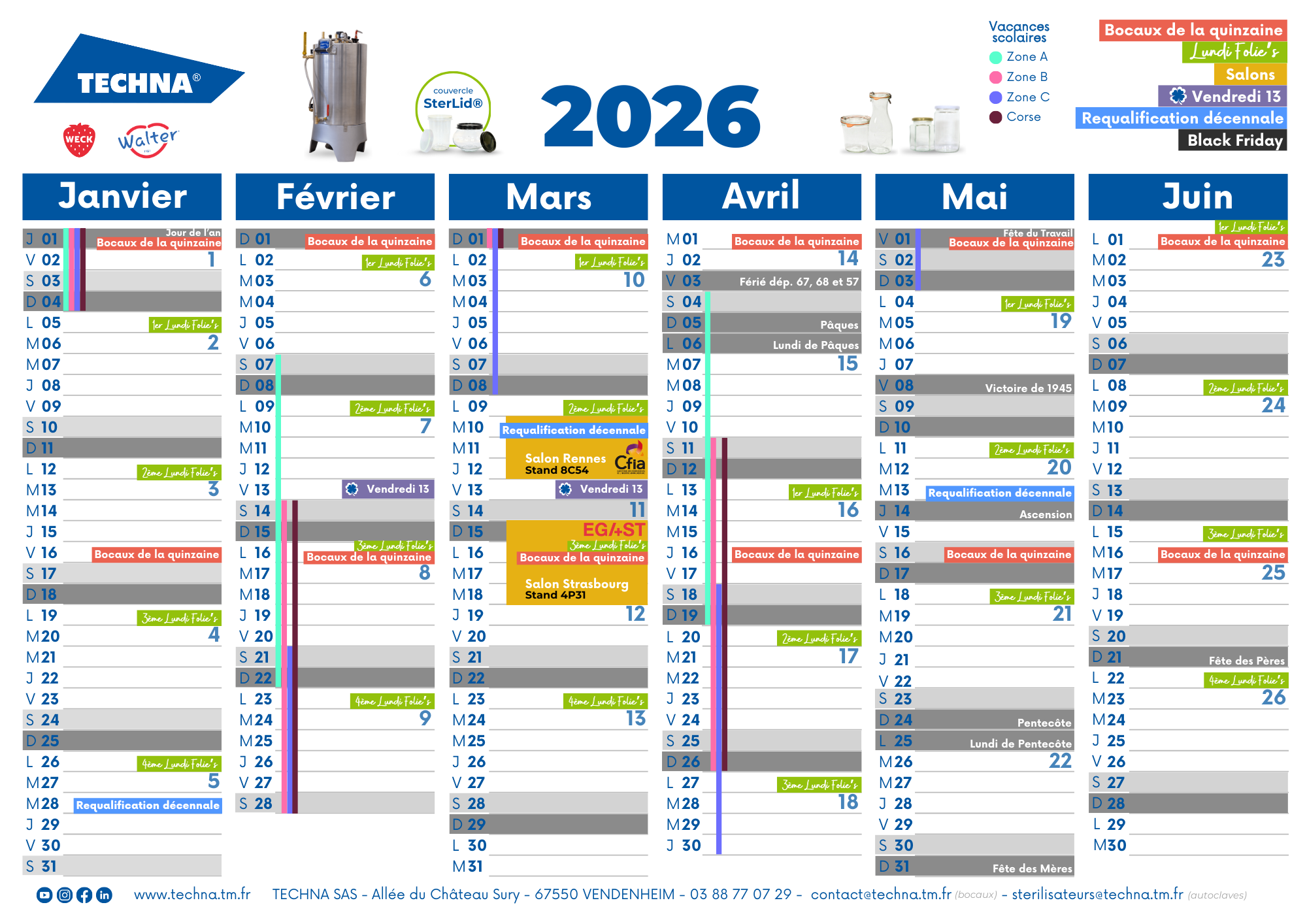 Pour vous accompagner efficacement dans votre recherche, TECHNA met à votre disposition un accès simplifié à ses catalogues en ligne. Vous y découvrirez une gamme complète de produits dédiés à la stérilisation et à la conservation de vos productions : stérilisateurs autoclaves automatiques ou semi-automatiques, bocaux en verre WECK, bocaux type Twist-Off, accessoires pour pour votre stérilisateur autoclave ou pour vos bocaux (couvercles en verre, joints en caoutchouc, clips, etc.) N’hésitez pas à télécharger nos catalogues pour en savoir plus sur nos produits destinés aux conserves alimentaires.
